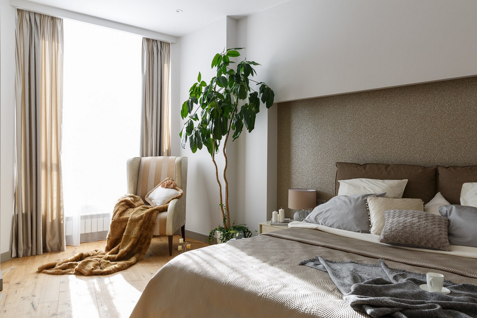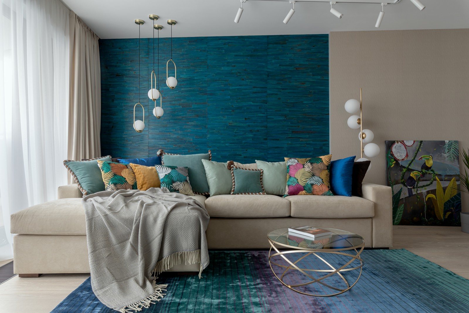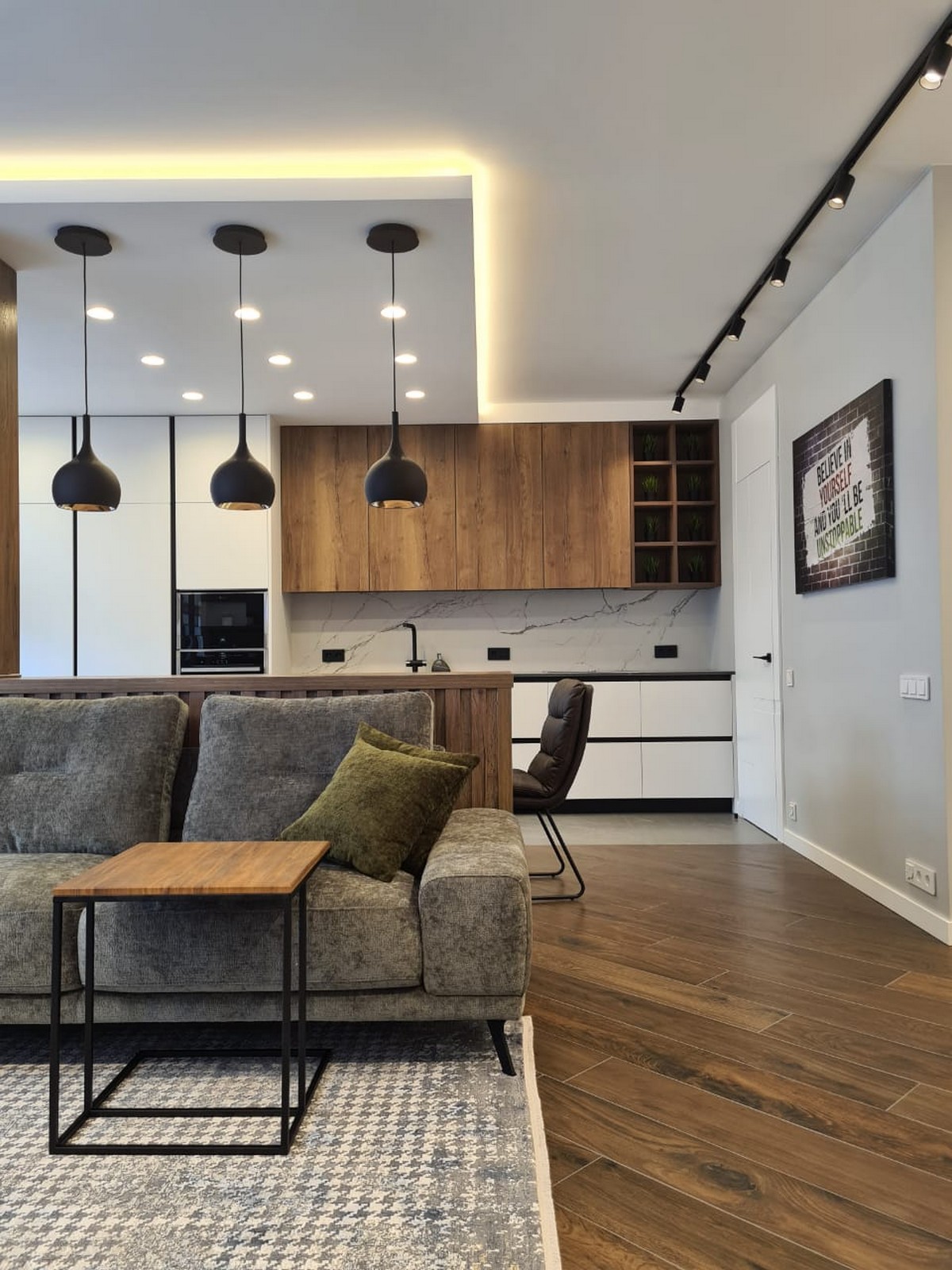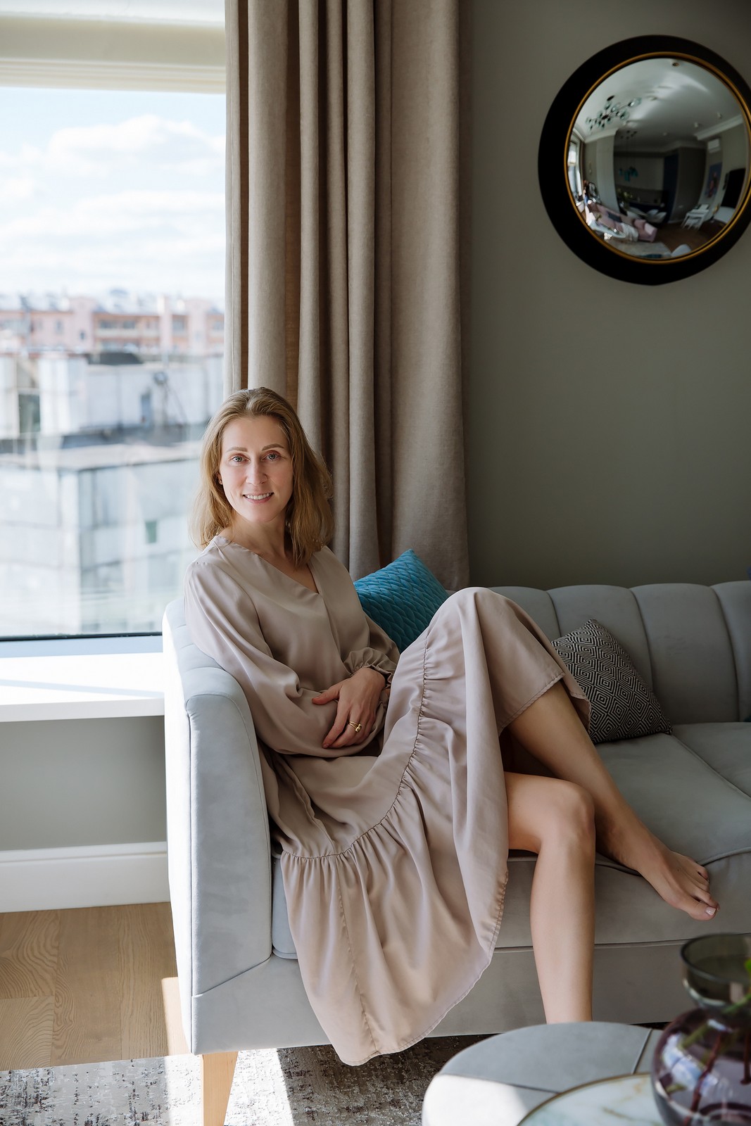 Квартира общей площадью 140 м² в центре Екатеринбург. В отделке интерьера использованы преимущественно натуральные материалы. Двери LEVEL приятного песочного оттенка отделанные шпоном дуба. Широкая паркетная доска специального нестандартного размера – 280 на 30 сантиметров, изготовленная фабрикой LEGEND. А стена за диваном выполнена из обоев из натуральной тыквы!