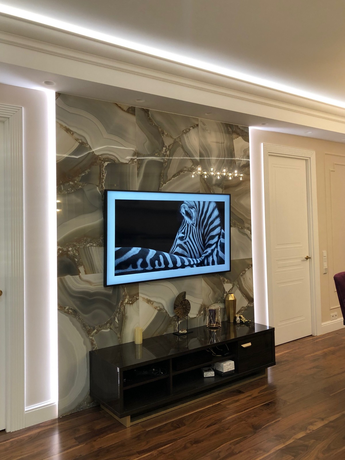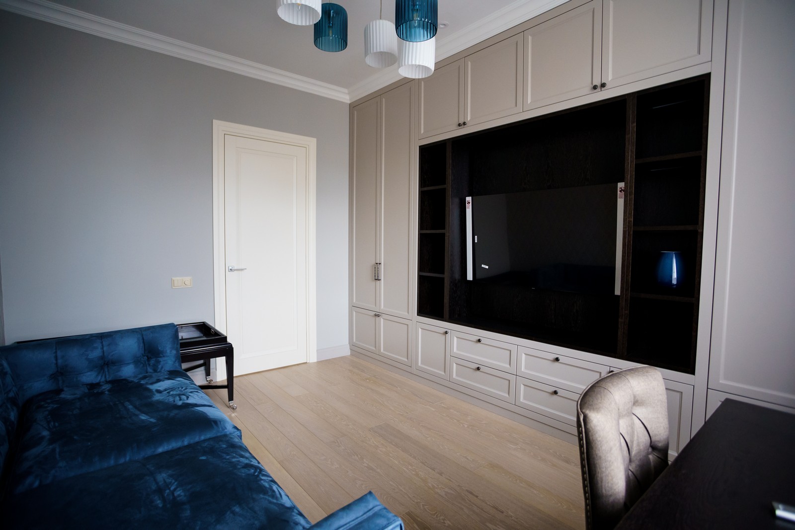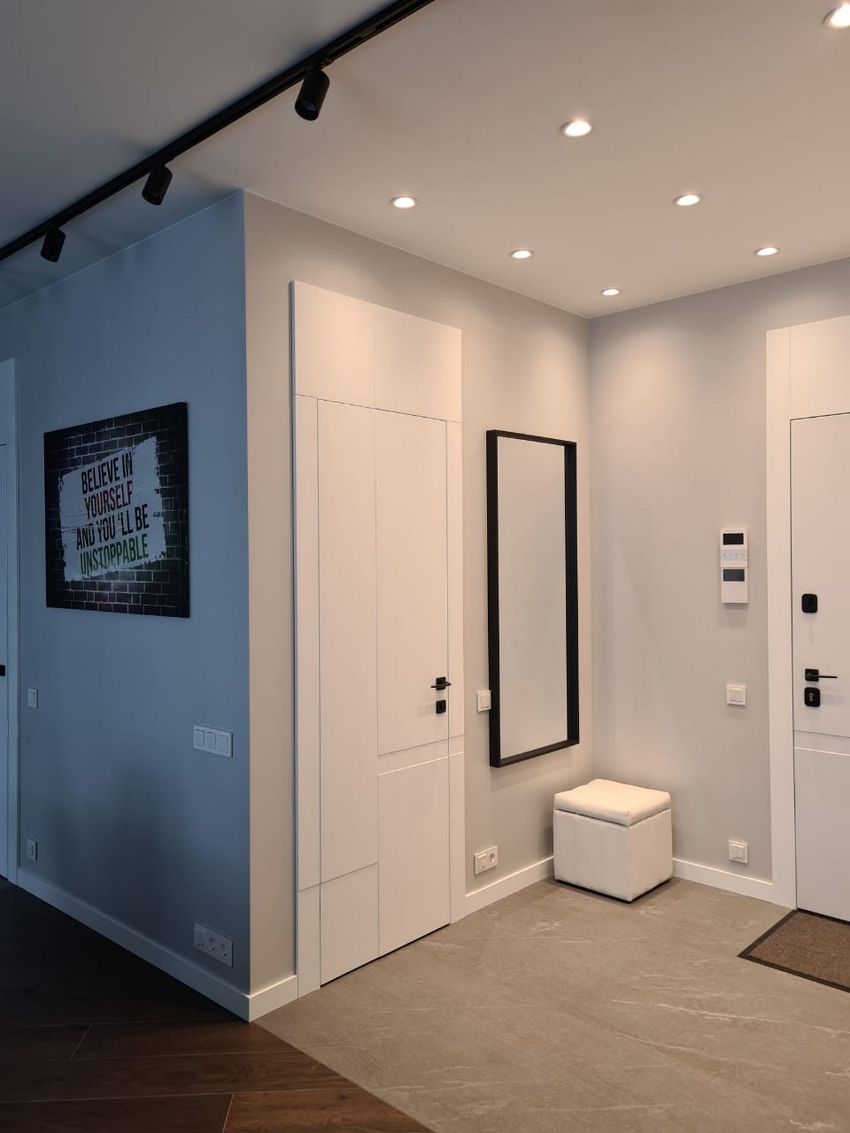 Стильные двери OPERA в неоклассическом стиле и скрытые двери FONDO в квартире известного актера Станислава Бодаренко. Также была выполнена панель на входную дверь OPERA в едином стиле с межкомнатными дверьми.
