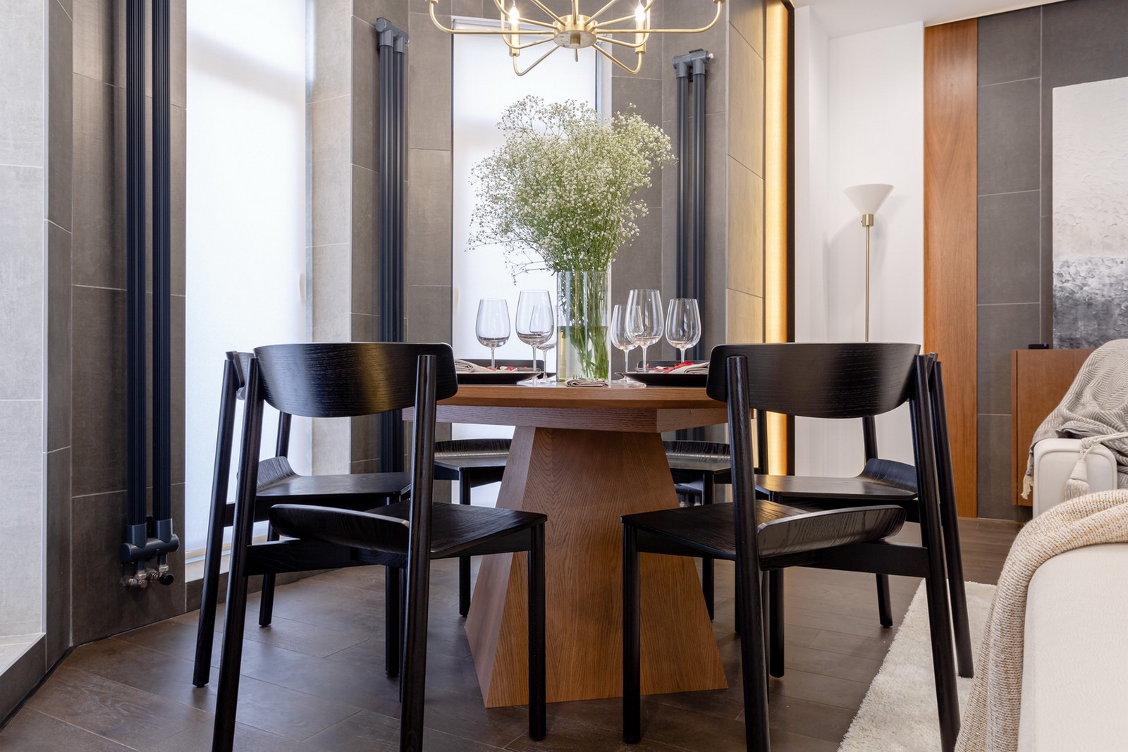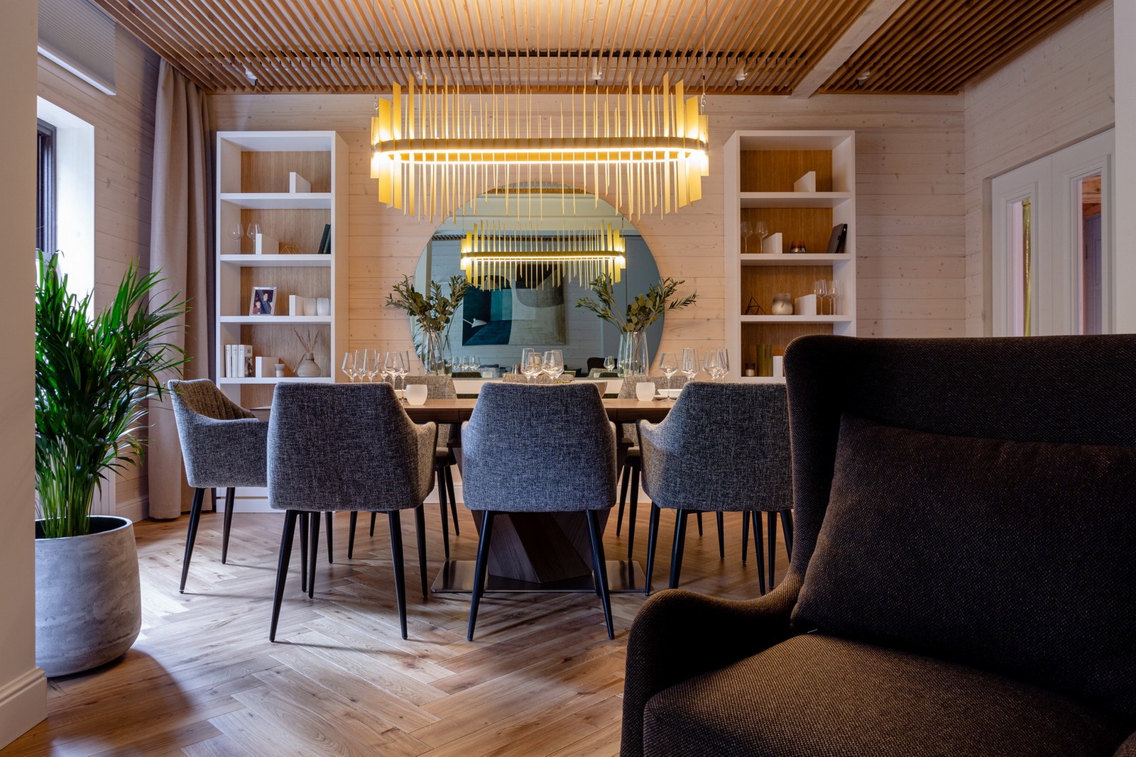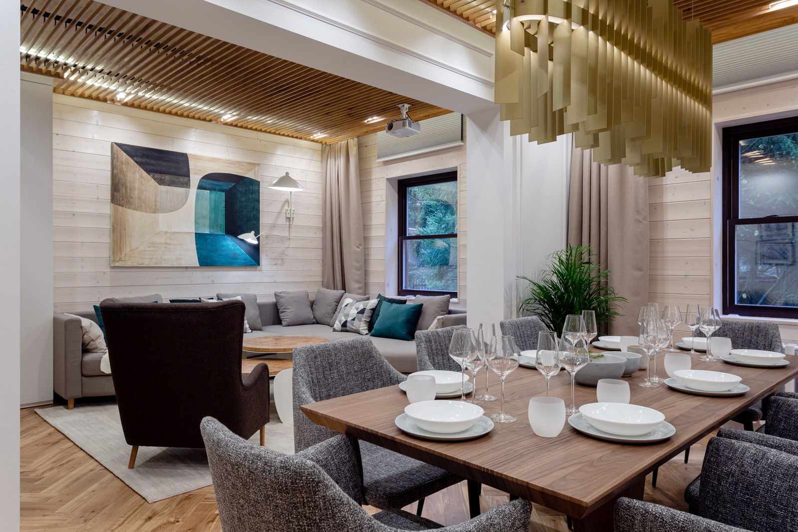 Обратите внимание, как эффектно смотрится широкая инженерная доска LEGEND на больших пространствах. Нарочито грубая и суковатая фактура сортировки Character придает интерьеру оттенок брутальности и подчеркивает натуральность материала.